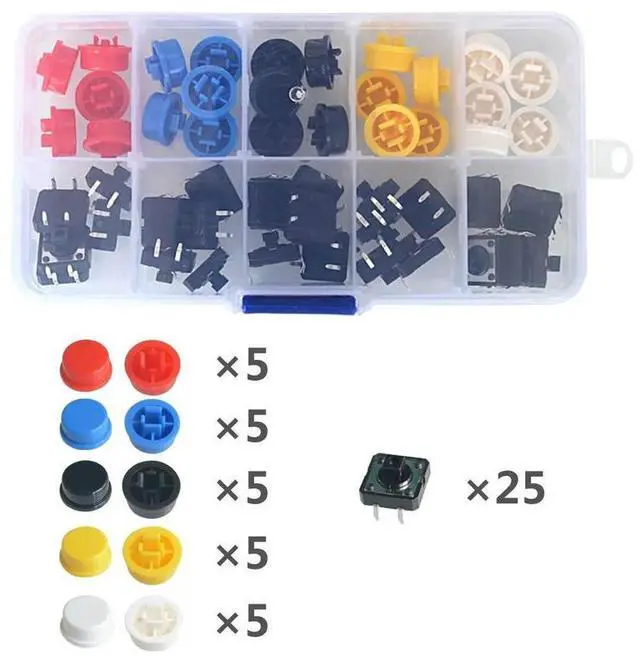 25PCS Tactile Push Button Switch Momentary 12*12* 7.3MM Micro switch button + 25PCS Tact Cap (5 colors)