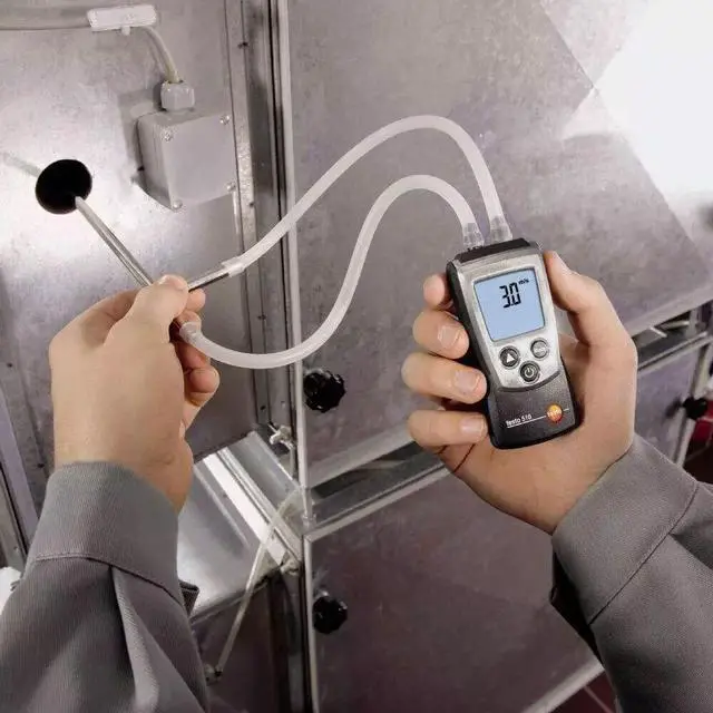 The testo 510 digital manomenter is an all in one, low pressure measurement solution. The 510 can measure total external static pressure, differential pressure, duct velocities, manifold pressures, and air flow with pitot tube (optional).