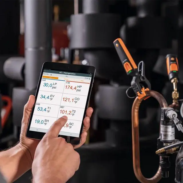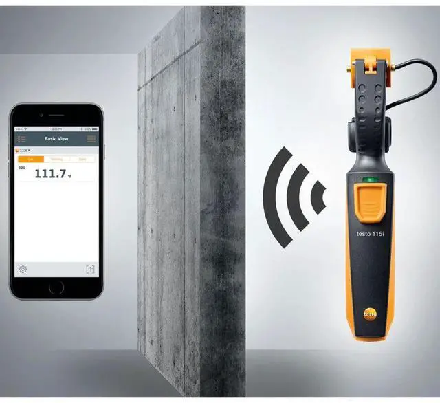Professional measuring technology is now mobile: when it comes to measuring temperature at widely spaced measuring points in particular, the testo 115i makes things a lot easier thanks to wireless connection to your smartphone or tablet. When used in conjunction with the testo 549i pressure measuring instrument, individual refrigeration system parameters can also be calculated.