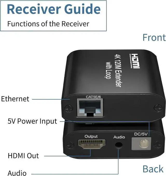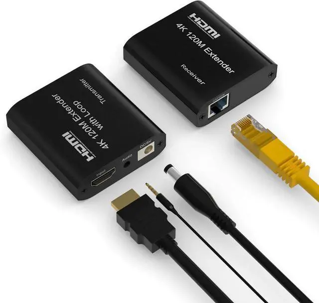 HDMI Ethernet Extender: LUKFOCAB HDMI extender transmits high-resolution video and audio simultaneously up to 120M (394ft) via CAT 5e/6/7 cable. Providing a more stable connecting and smooth video/audio output over long distance