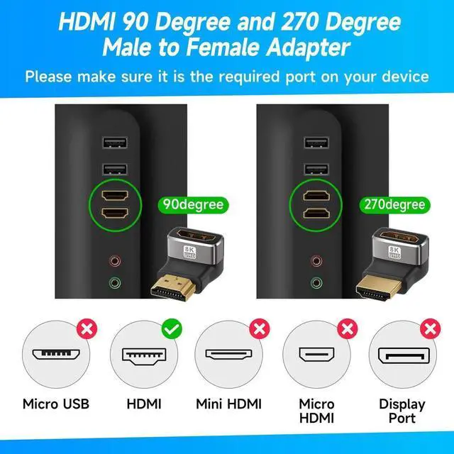 Additional Features- Universal Compatibility :This HDMI male to female coupler is suitable for all standard HDMI interface devices. Plug and play, no need for additional software or drivers. Support DP signals from devices like Blu-Ray players, DVD Players, TV Box, PC, monitors, TVs, and more. (Note: For 8K performance, your HDMI cables, devices or ports must support HDMI 2.1 functions.