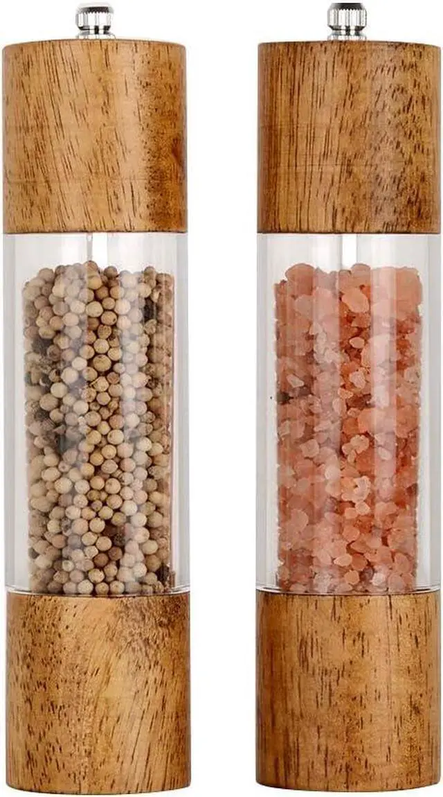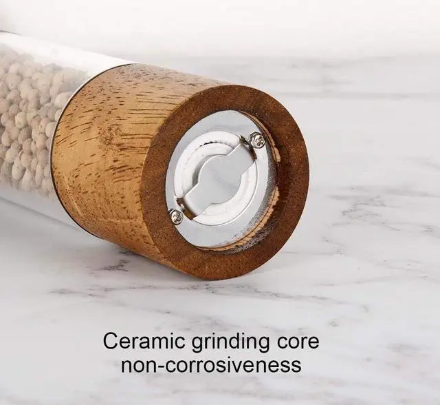 These salt pepper mills are made of high-quality acrylic and rubber wood, which is stylish, elegant and modern. Visible acrylic body can help you identify the sea salt and pepper easily. It is very suitable for kitchen, dining table, restaurant or travel. Using this mill to grind spices, the food aroma can be rich and delicious.