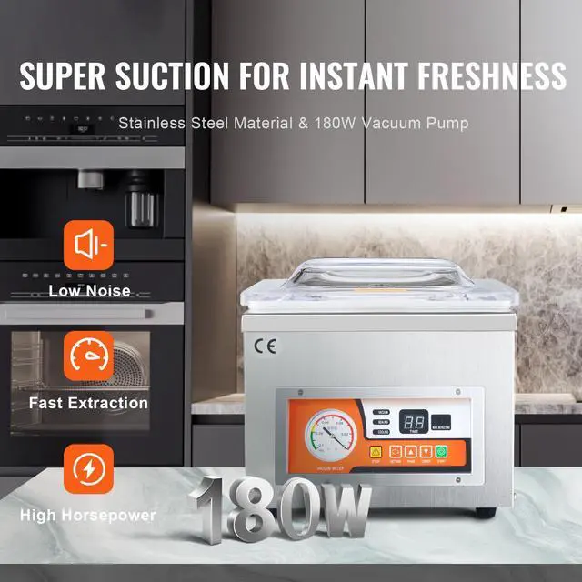 VEVOR Chamber Vacuum Sealer, DZ-260A 6.5 m/h Pump Rate, Excellent Sealing Effect with Automatic Control, 110V Kitchen Packaging Machine for Fresh Meats, Fruit Saver, Home, Commercial Using