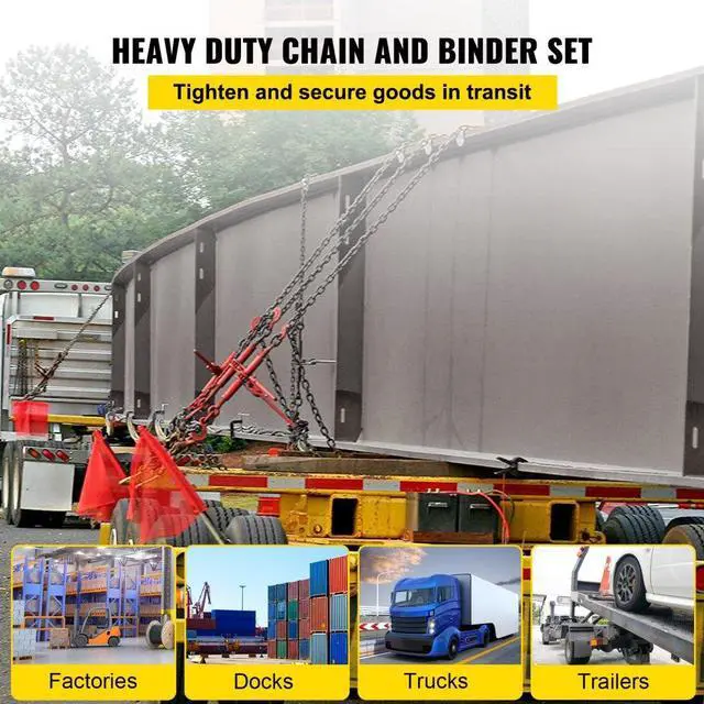 VEVOR Chain Load Binder, 5/16" Tie Down Kit w/ 6600LBS Working Load Capacity and Two Grab Hooks, Includes (4) Ratchet Binders - (4) 21' Grade 80 Chains, Transport Load Package for Hauling, Towing