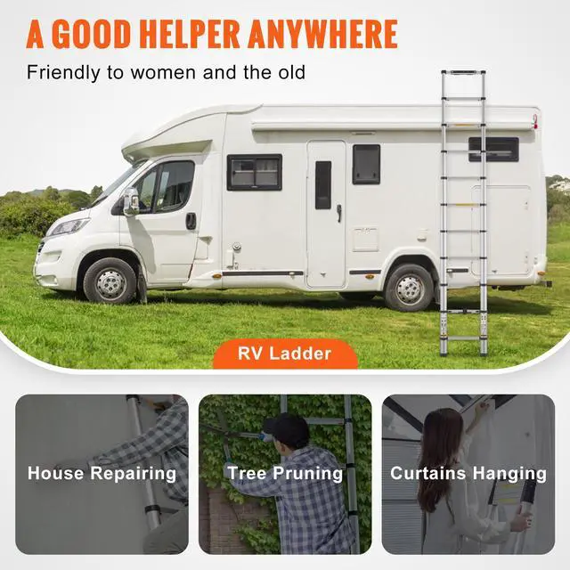 Extended Height: 10.5 ft / 320 cm,Retracted Height: 2.5 ft / 76.5 cm,Item Size (L x W x H): 19 x 3.7 x 30 in / 48 9.5 76.5 cm,Pedal Width: 1.6 in / 4 cm,Retracted Width: 19 in / 48 cm,Model: VV-SSLT-10.5,Max. Load Capacity: 375 lbs / 170 kg,Item Weight: 18 lbs / 8.2 kg,Step Height: 11.8 in / 30 cm