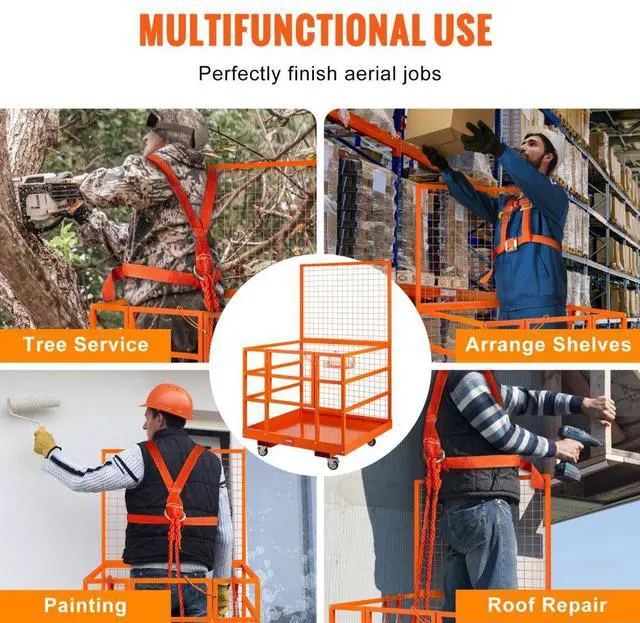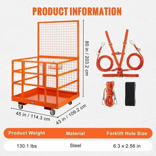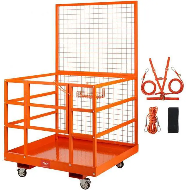VEVOR Forklift Safety Cage Work Platform 43X45in 1400lbs w/ Wheels for Aerial