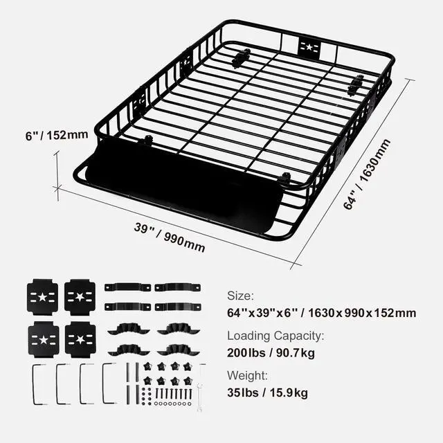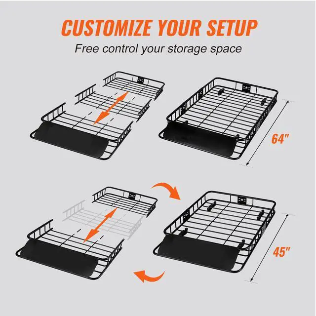 • VEVOR Roof Rack Cargo Basket, 64" x 39" x 6" Rooftop Cargo Carrier with Extension, Heavy-duty 200 LBS Capacity Universal Roof Rack Basket, Luggage Holder for SUV, Truck, Vehicle