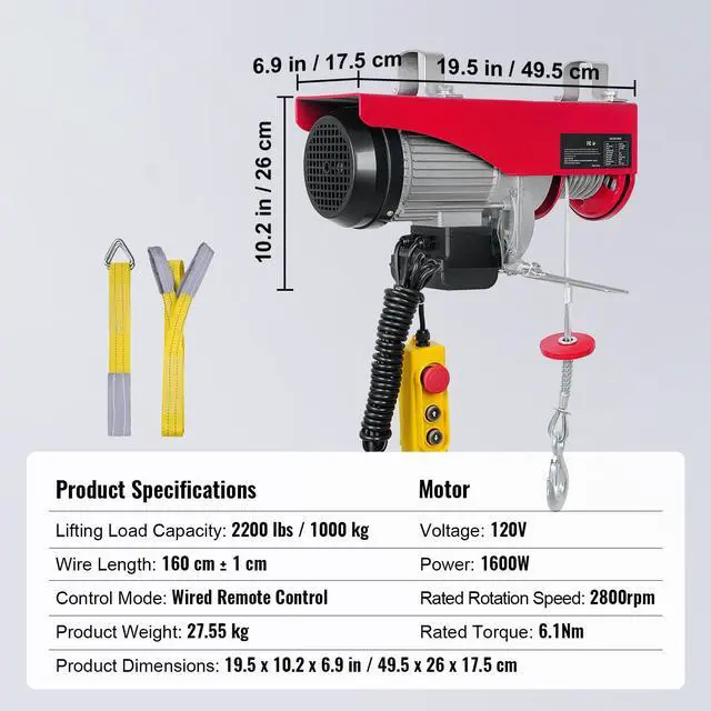 Lifting Load Capacity: 2200 lbs / 1000 kg