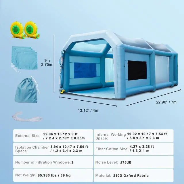 VEVOR Inflatable Paint Booth, 23x13x8.5ft Inflatable Spray Booth, High Powerful 480W+750W Blowers Spray Booth Tent, Car Paint Tent Air Filter System for Car Parking Tent Workstation Motorcycle Garage