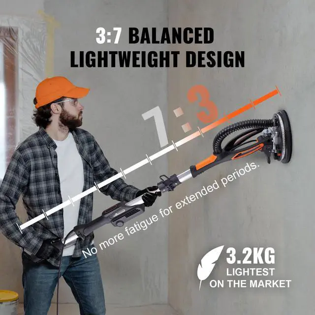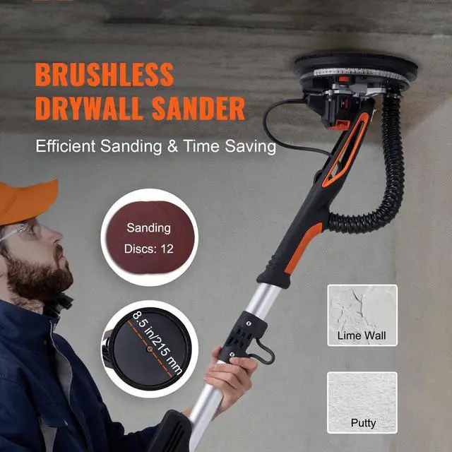 VEVOR Drywall Sander 800W Brushless Motor 1000-2300RPM Variable Speed