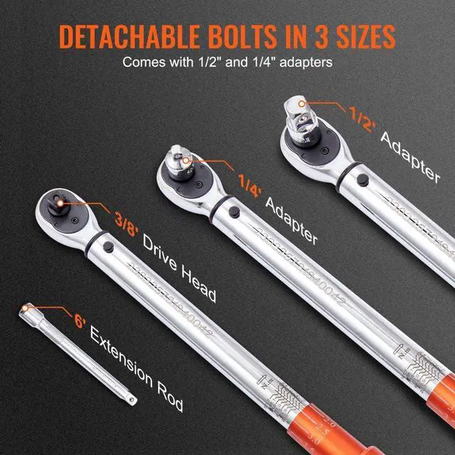 VEVOR Torque Wrench, 3/8-inch Drive Click Torque Wrench 10-80ft.lb/14-110n.m, Dual-Direction Adjustable Torque Wrench Set, Mechanical Dual Range Scales Torque Wrench Kit with Adapters Extension Rod