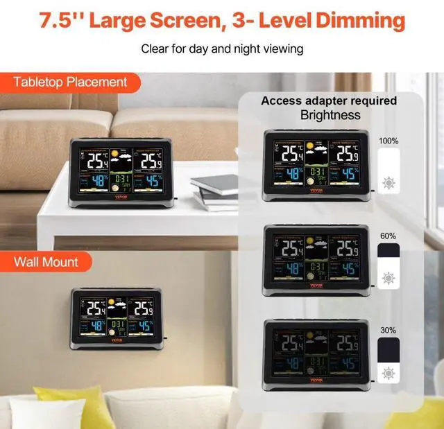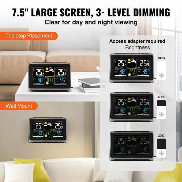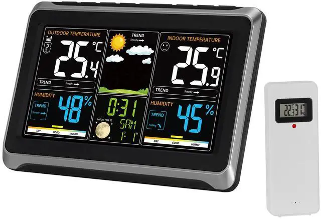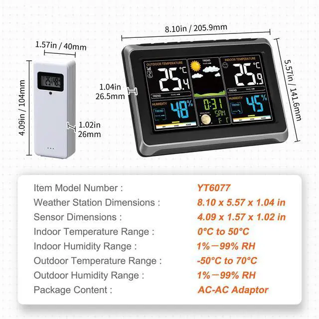 Weather Station Dimensions: 8.10 x 5.57 x 1.04 in / 205.9 x 141.6 x 26.5 mm