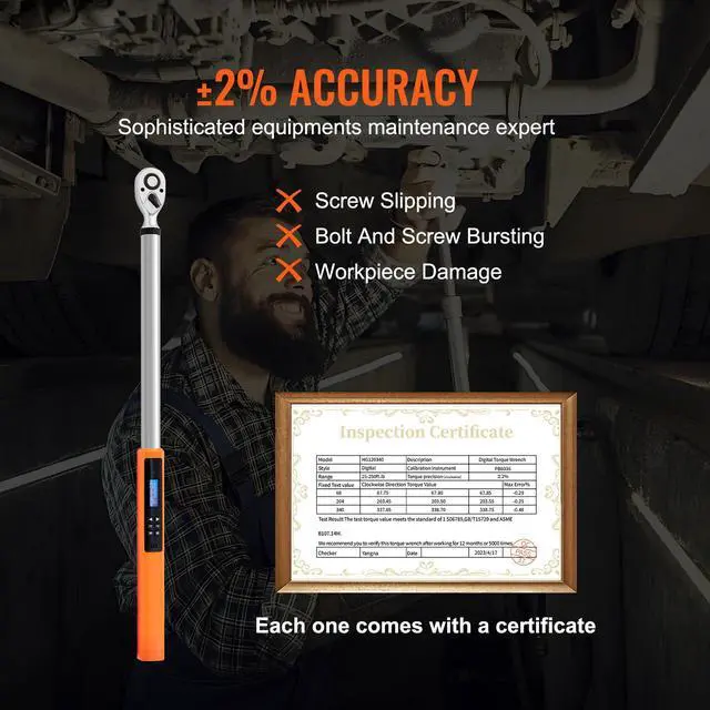 • VEVOR Digital Torque Wrench, 1/2" Drive Electronic Torque Wrench, Torque Wrench Kit 25-250ft.lb/34-340n.m Torque Range Accurate to ±2%, 3-Mode Adjustable Torque Wrench Set with LED Buzzer Calibration