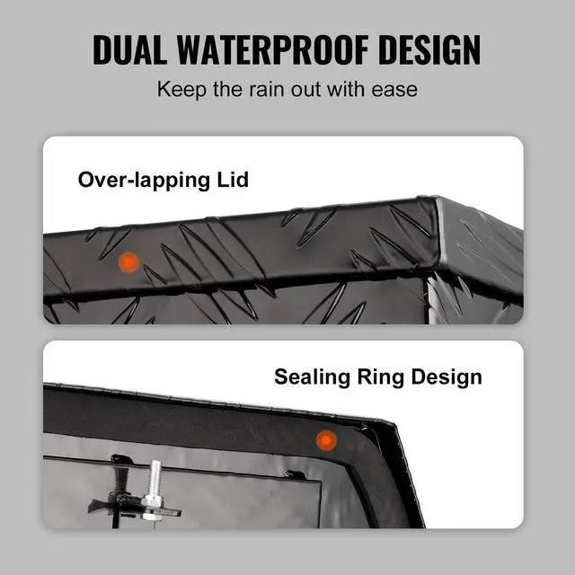 VEVOR Trailer Tongue Box, Aluminum Alloy Diamond Plate Tongue Box Tool Chest, Heavy Duty Trailer Box Storage with Lock and Keys, Utility Trailer Tongue Box for Pickup Truck, RV, Trailer, 29"x16.2"x18"
