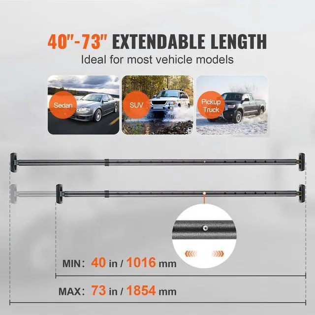 VEVOR Cargo Bar, Truck Bed Bar Adjustable from 40" to 73", Heavy-duty Steel Cargo Stabilizer Bar with 220 lbs Capacity, Truck Load Bar Stop Sliding for Pickup Truck Bed, SUV, Minitruck