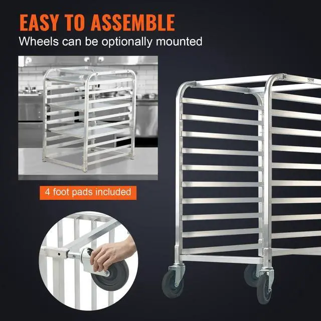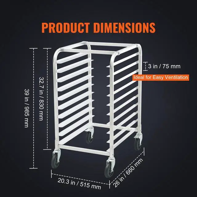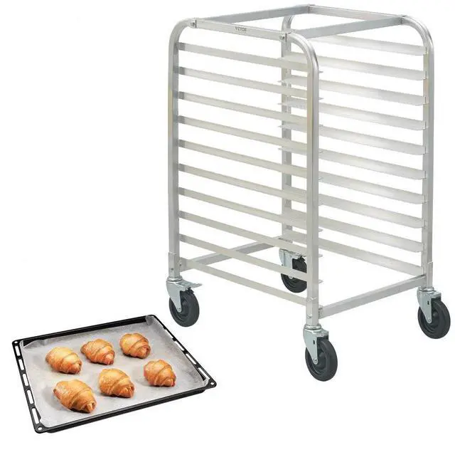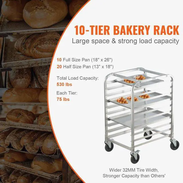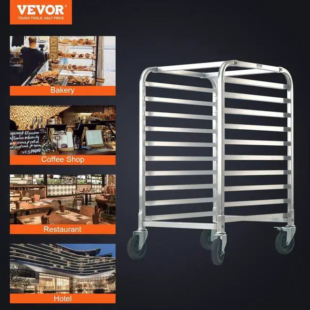 VEVOR Bun Pan Rack, 10-Tier Commercial Bakery Racks with Brake Wheels, Aluminum Racking Trolley Storage for Half & Full Sheet, Speed Rack For Kitchen Home, Bread Baking Equipment, 26"L x 20.3"W x 39"H