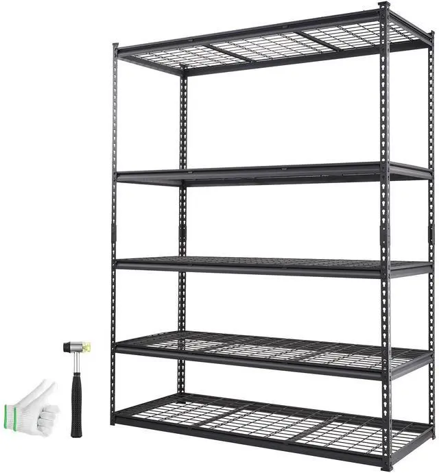 VEVOR Storage Shelving Unit, 5-Tier Adjustable, 2000 lbs Capacity, Heavy Duty Garage Shelves Metal Organizer Wire Rack, Black, 60" L x 24" W x 78" H for Kitchen Pantry Basement Bathroom Laundry Closet