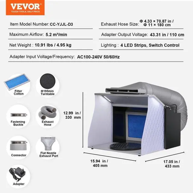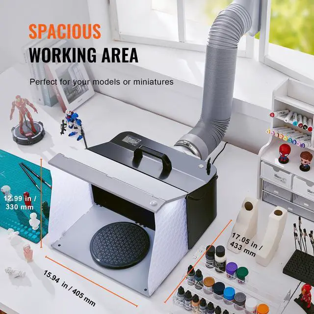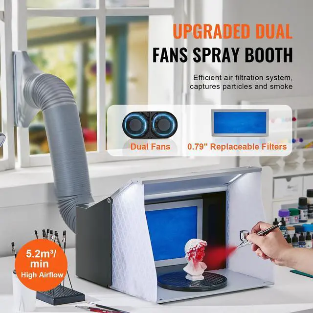 VEVOR Airbrush Spray Booth, Portable Hobby Airbrush Paint Spray Booth Kit with 4 LED Light, Powerful Dual Exhaust Fans, Turntable and 6 ft Extension Hose, for Painting Models, Arts, Crafts, Cakes