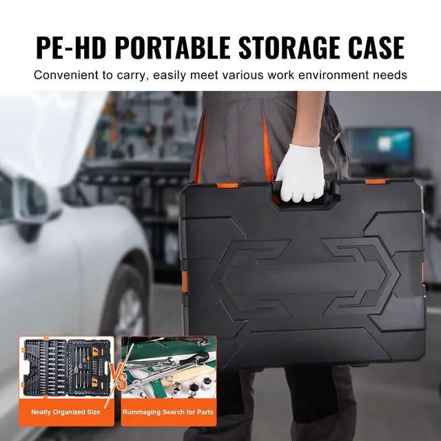 VEVOR Mechanics Tool Set and Socket Set, 1/4" 3/8" 1/2" Drive Deep and Standard Sockets, 205 Pcs SAE and Metric Mechanic Tool Kit with Bits, Combination Wrench, Hex Wrenches, Accessories, Storage Case