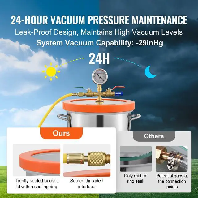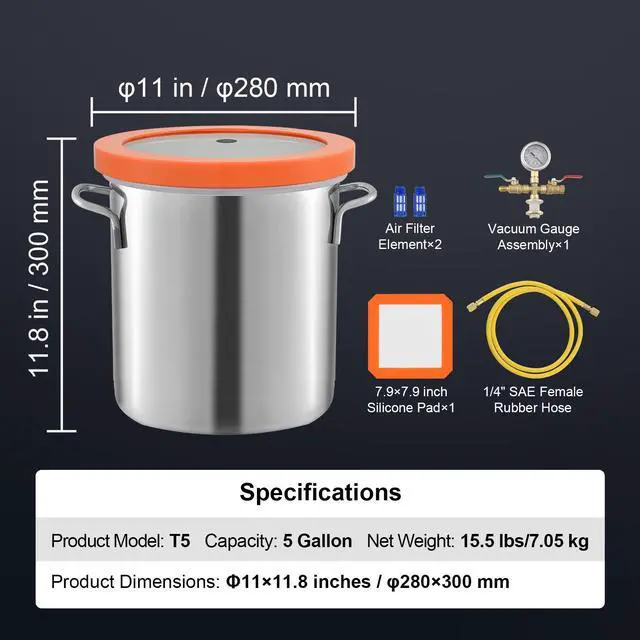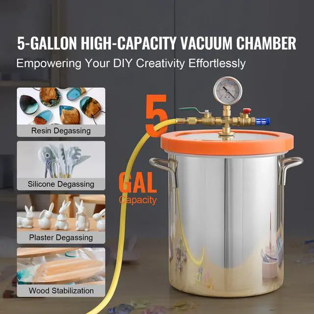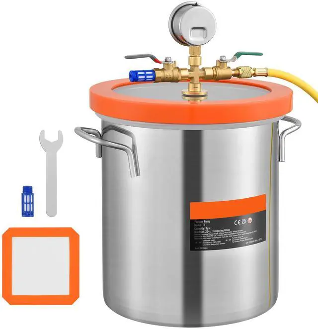 VEVOR 5 Gallon Vacuum Chamber, Upgraded Tempered Glass Lid Vacuum Degassing Chamber, 304 Stainless Steel Chamber, for Stabilizing Wood, Resin Degassing, Silicone Degassing and Plaster Degassing