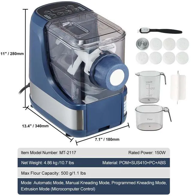 Mode: Automatic Mode, Manual Kneading Mode, Programmed Kneading Mode, Extrusion Mode (Microcomputer Control)
