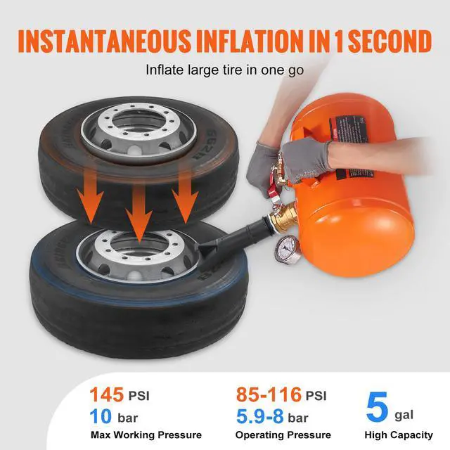 VEVOR Tire Bead Blaster, 5 Gallon/19L Capacity, Includes Pressure Gauge & Handle, 145 PSI Max Inflation Tank, Operates Between 85-116 PSI for Cars, Trucks, and ATVs