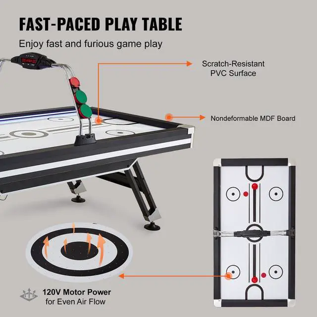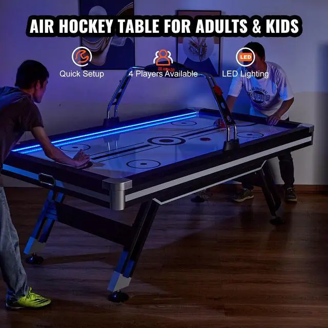 VEVOR Air-Powered Hockey Table, 89" Indoor Hockey Table for Kids and Adults, LED Sports Hockey Game with 2 Pucks, 2 Pushers, and Electronic Score System, Arcade Gaming Set for Game Room Family Home