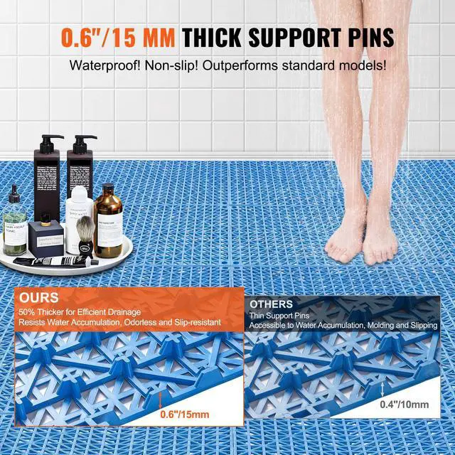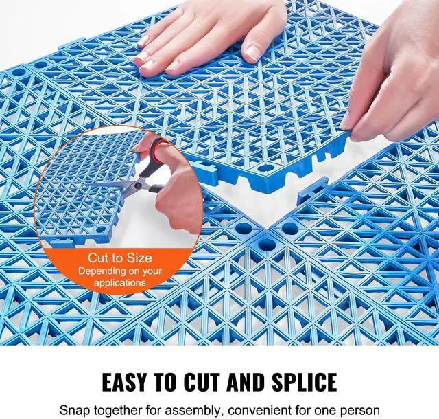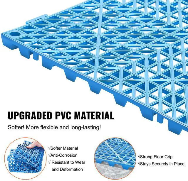 VEVOR Interlocking Tile 50PCS Blue, Drainage Tiles 12" x 12" Splicing, PVC Interlocking Drainage Floor Tiles, Non-Slip Drainage Holes for Restroom, Bathroom, Kitchen, Pool, Wet Areas