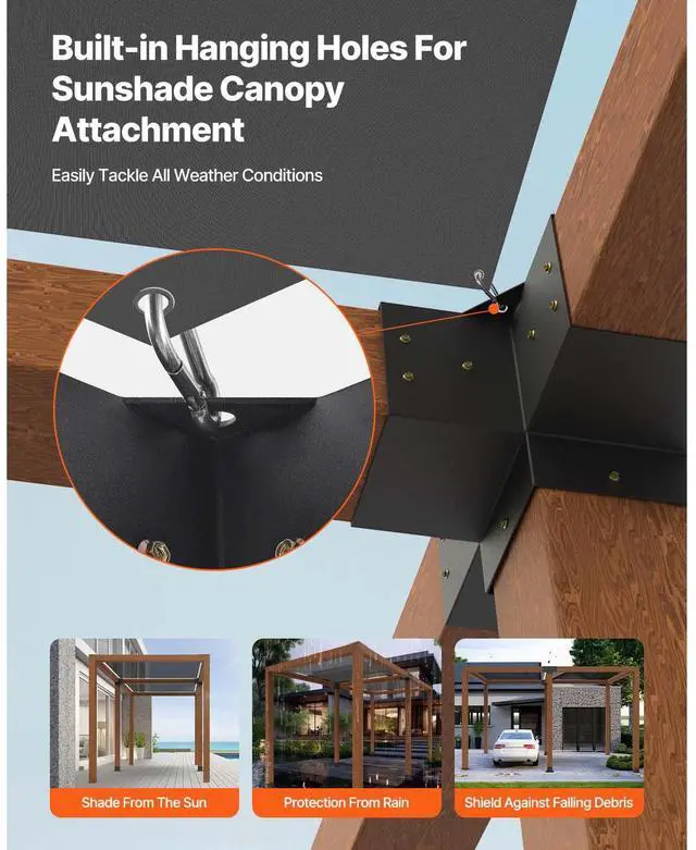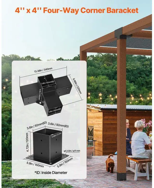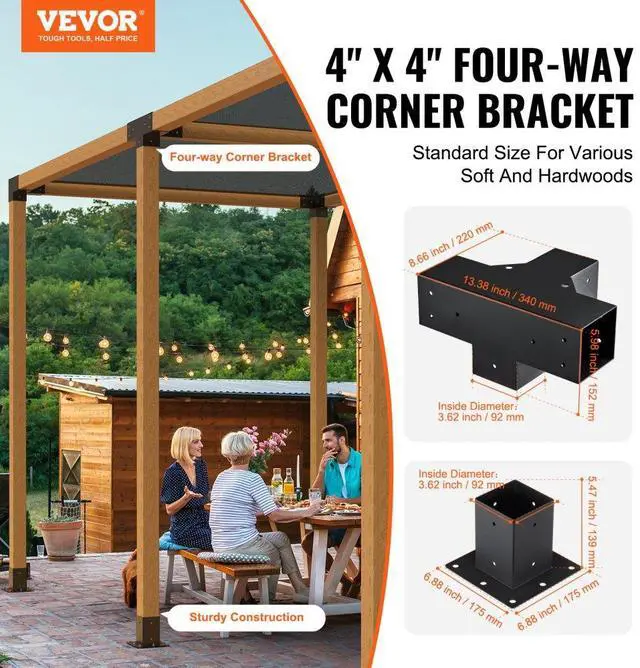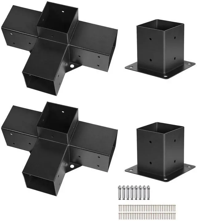 VEVOR Pergola Bracket Kit 4''x4'', 4pcs 4-Way Heavy Duty Corner Bracket Woodworks DIY Post Base Kit, Easy Installation Wooden Beams for Gazebos, Patio Pergolas, Log Cabin Outdoor Pergola Hardware