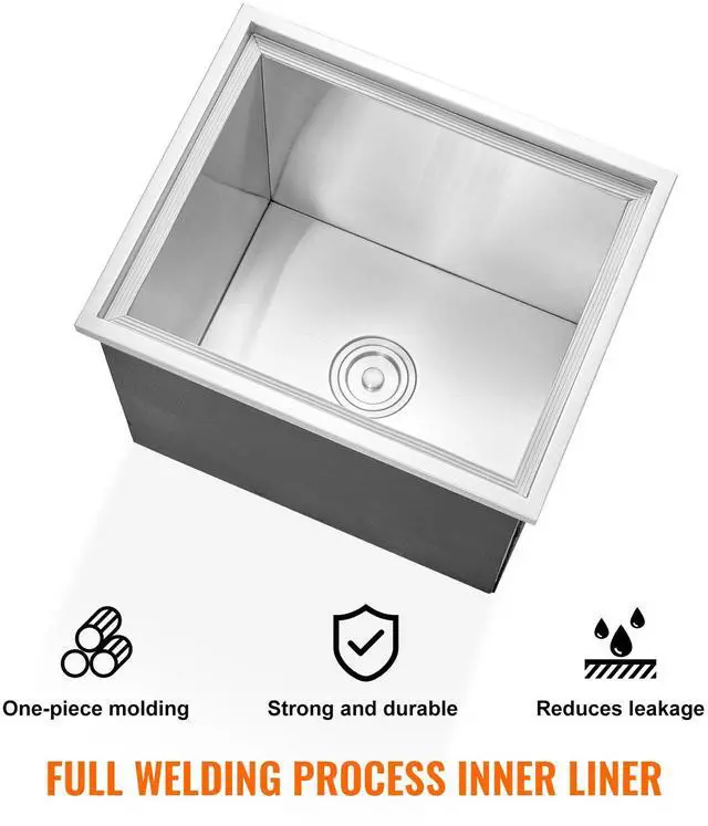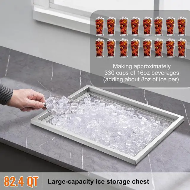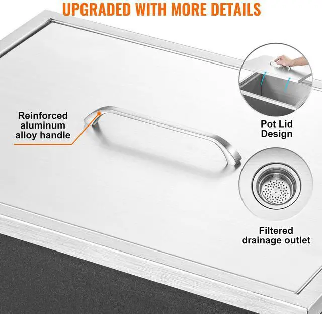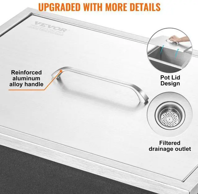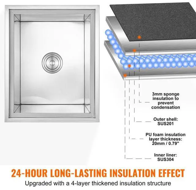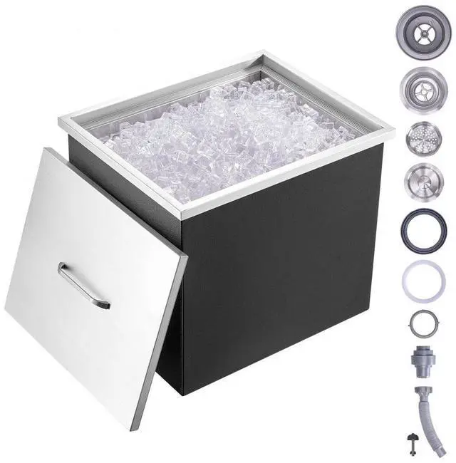 VEVOR Drop in Ice Chest, 21"L x 17"W x 18"H Stainless Steel Ice Cooler, Commercial Ice Bin with Cover, 40 qt Outdoor Kitchen Ice Bar, Drain-pipe and Drain Plug Included, for Cold Wine Beer