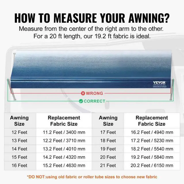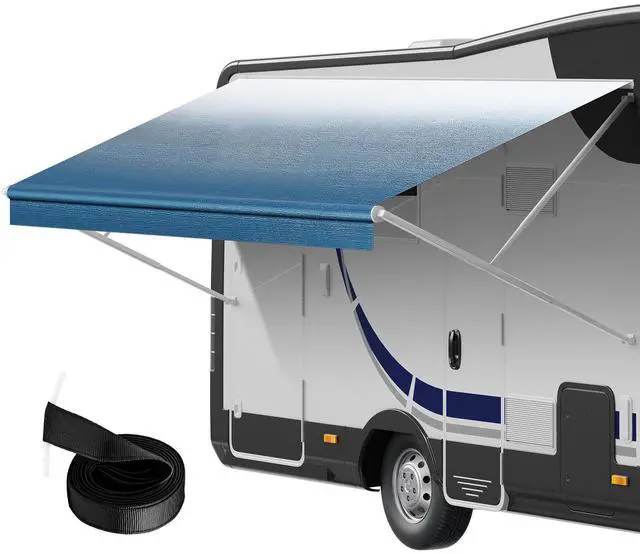 VEVOR RV Awning Fabric Replacement, 19'2" Fabric Length for 20' Awning, Heavy Duty 3-Ply 16oz PVC Camper Awning Fabric, Waterproof & UV Protection Outdoor Canopy for RV, Trailer, Motorhome, Blue Fade