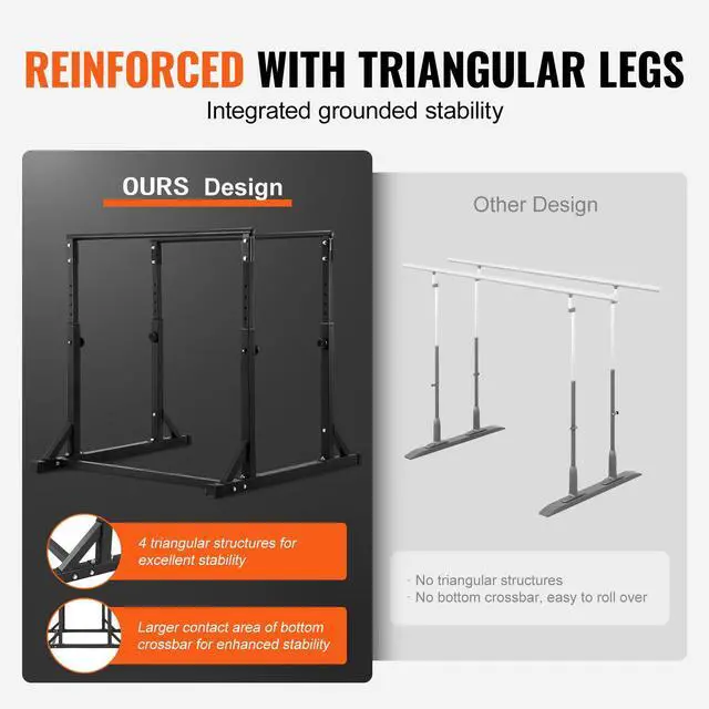 VEVOR Dip Bar, 800 lbs Capacity, Heave Duty Dip Stand Station with Adjustable Height, Fitness Workout Dip Bar Station Stabilizer Parallette Push Up Stand, Parallel Bars for Strength Training Home Gym