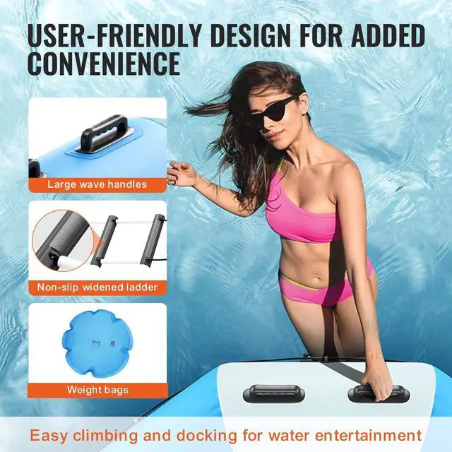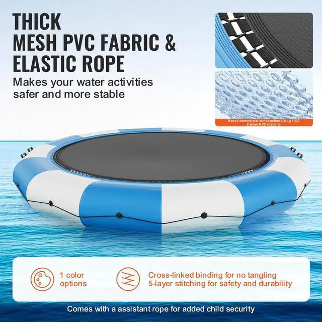 VEVOR Inflatable Water Bouncer, 15ft Recreational Water Trampoline, Portable Bounce Swim Platform with 3-Step Ladder & Electric Air Pump, Kids Adults Floating Rebounder for Pool, Lake, Water Sports