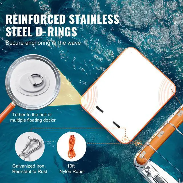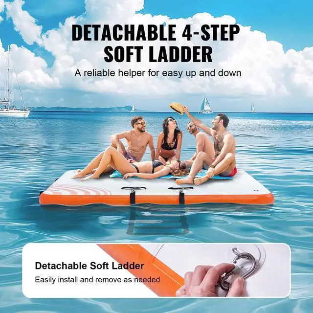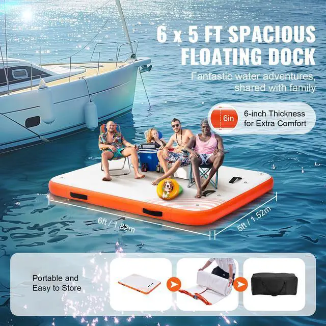 Floating Dock Material: PVC Brushed Non-slip Fabric,Item Color: White + Orange,Item Height: 6 in / 152 mm,Item Model Number: RD183-152,D-Ring Material: Stainless Steel,Product Weight: 24.25 lbs / 11 kg,Product Dimensions: 6 x 5 ft / 1.82 x 1.52 m