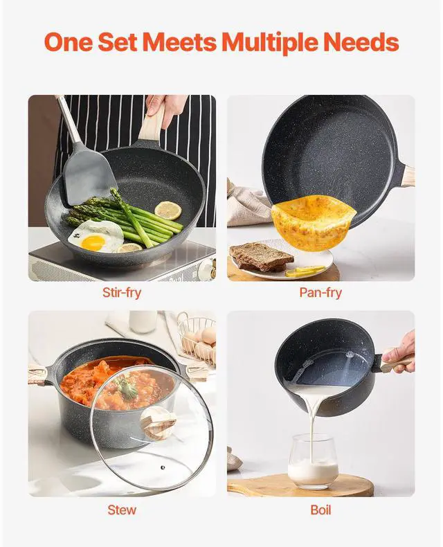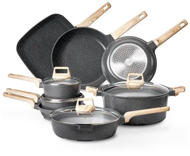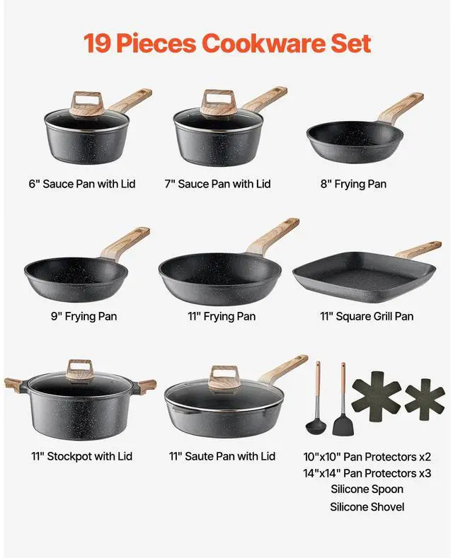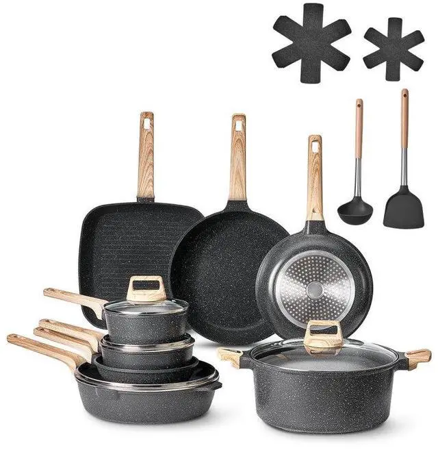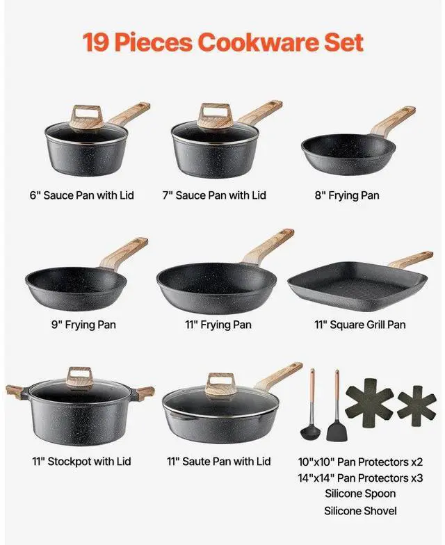 19 Piece Pots and Pans Set Granite Nonstick Kitchen Cookware Induction Black