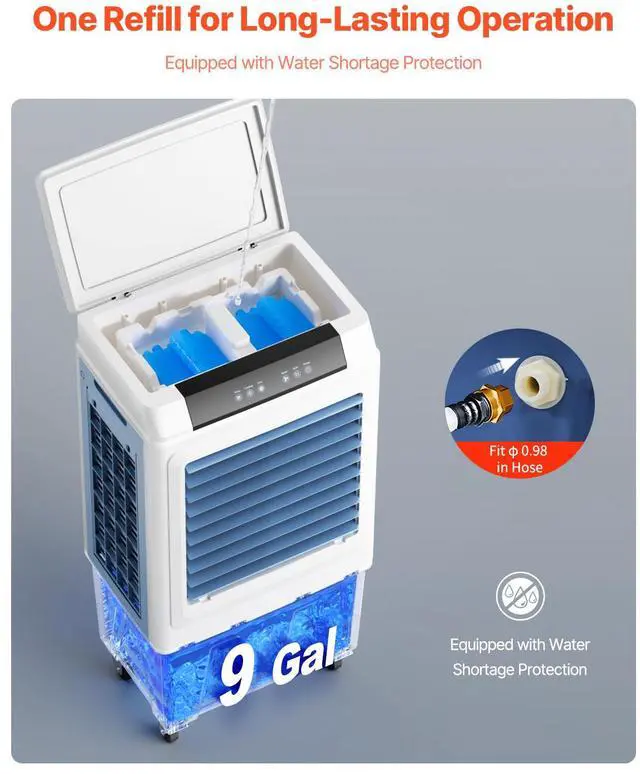 Evaporative Air Cooler 3100 CFM with 9 Gallon Water Tank Portable Swamp Cooler