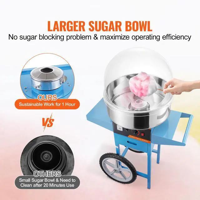 VEVOR Electric Cotton Candy Machine with Cart, 1000W Commercial Candy Floss Maker with Cover, Stainless Steel Bowl, Sugar Scoop and Drawer, Perfect for Home, Kids Birthday, Family Party, Blue