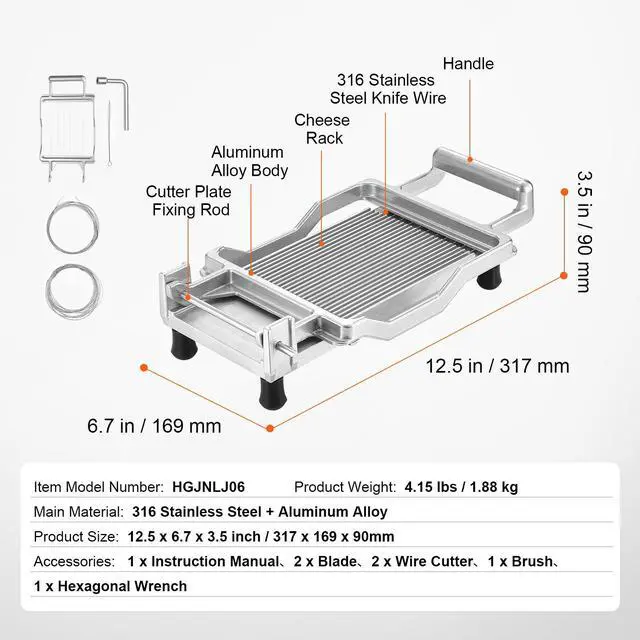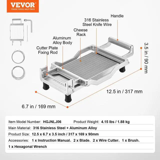 VEVOR Cheese Cutter with Wire Cheeser Butter Cutting 0.39" & 0.78" Cheese Slicer