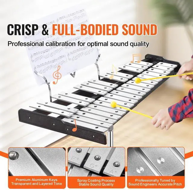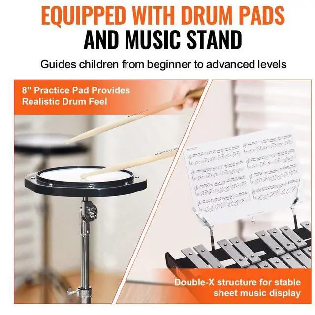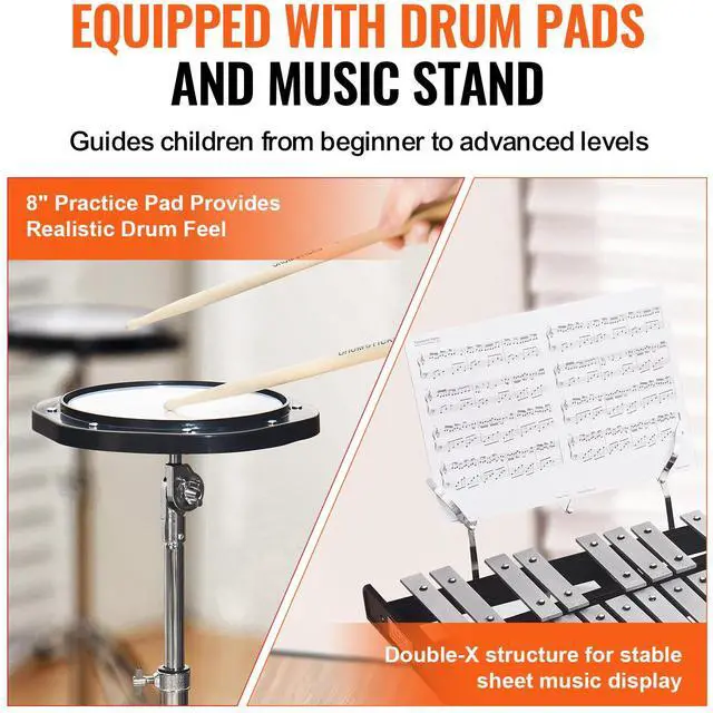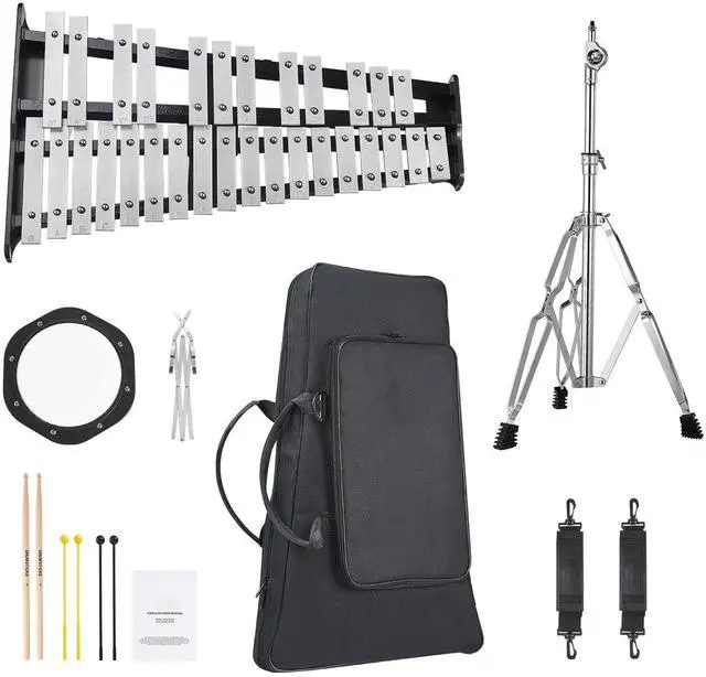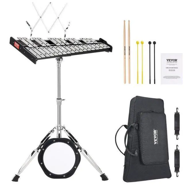 VEVOR 30 Note Glockenspiel Xylophone Bell Kit, Professional Percussion Instrument Set with Mallets, Drum Sticks, Music Stand, 8" Practice Pad, Adjustable Stand and Carrying Bag for Students & Adults