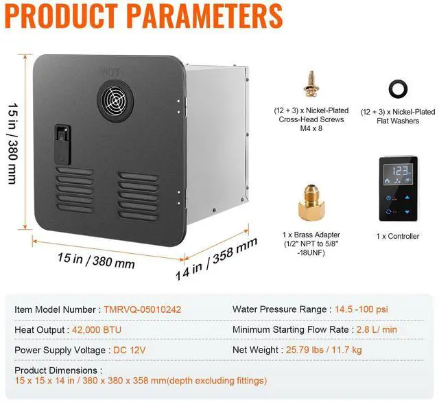 • Rapid Instant Heating: The RV water heater offers 42,000 BTU of high power, delivering hot water quickly to meet your needs for showering, dishwashing, and more. The RV water heater is CSA certified and has multiple protection features for peace of mind