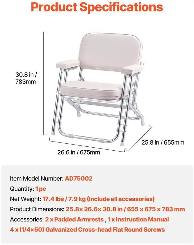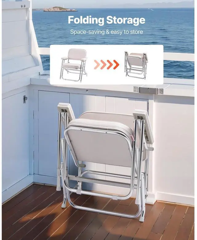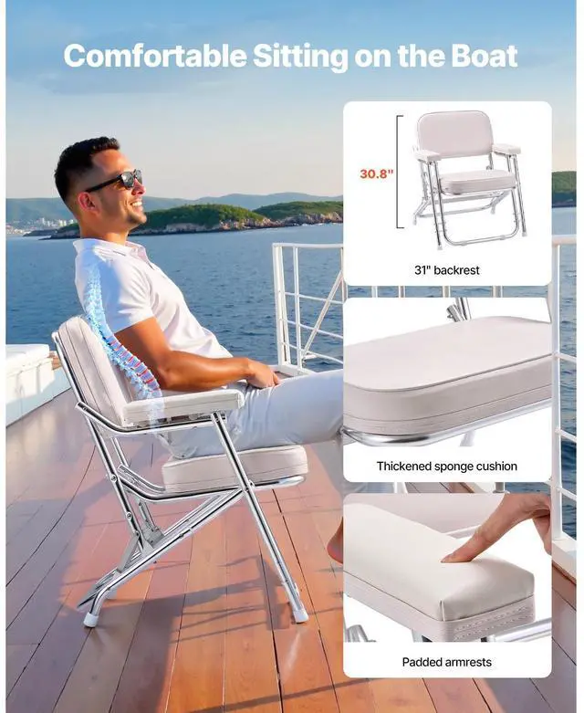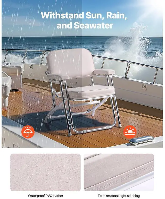 VEVOR Folding Deck Chair Boat Seat with Aluminum Alloy Frame Non-slip Foot Pads