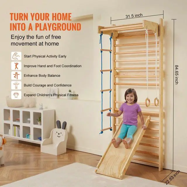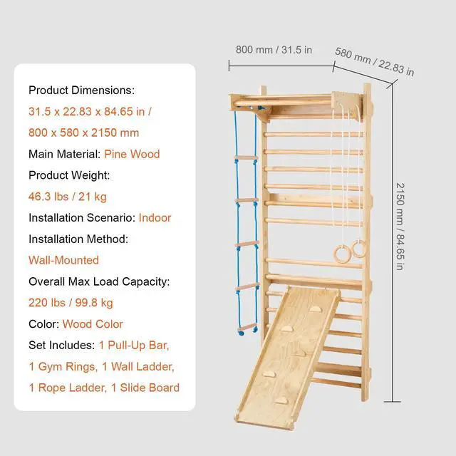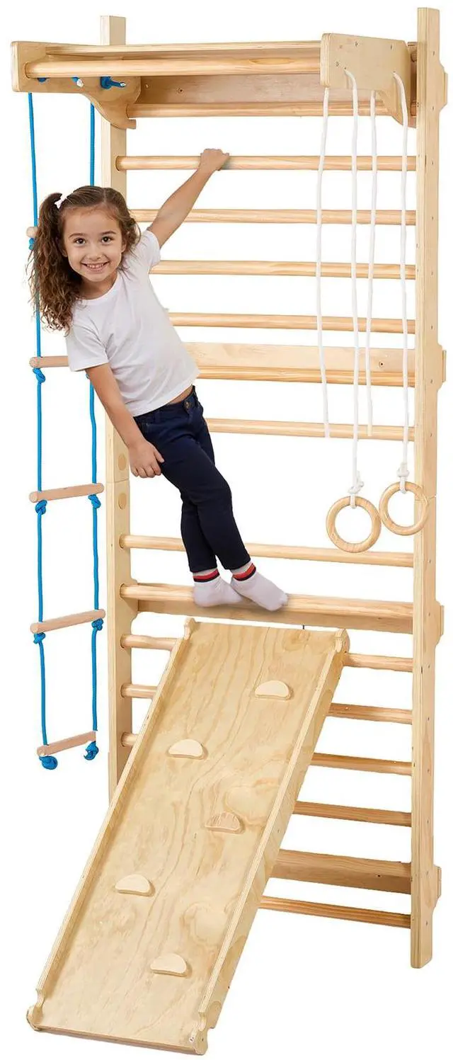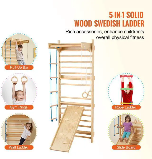 Swedish Ladder Wall Gym 5 in 1 Wooden Indoor Playground Climbing Toys