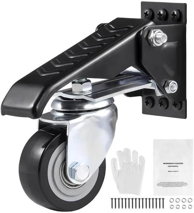 VEVOR Workbench Caster Wheels, 165 lbs Load Capacity, Set of 4, 2.5" Heavy Duty Retractable Casters, Side Mounted Adjustable Stepdown Wheels with 360° Swivel for Workbenches, Tables, and Equipment