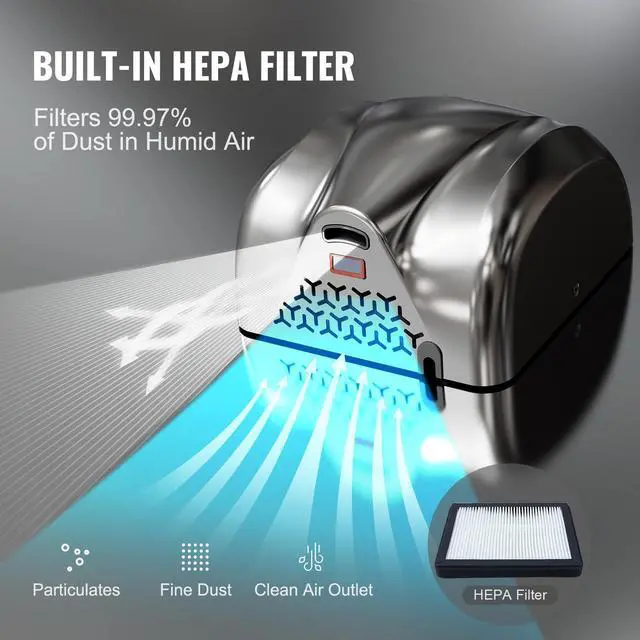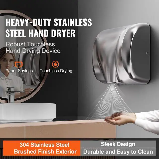 VEVOR Heavy Duty Commercial Hand Dryer, 1300W Automatic High Speed Stainless Steel Warm Wind Hand Blower, 120V Plug In/Hardwired Two Power Options, Compliant for Industry Business Restrooms