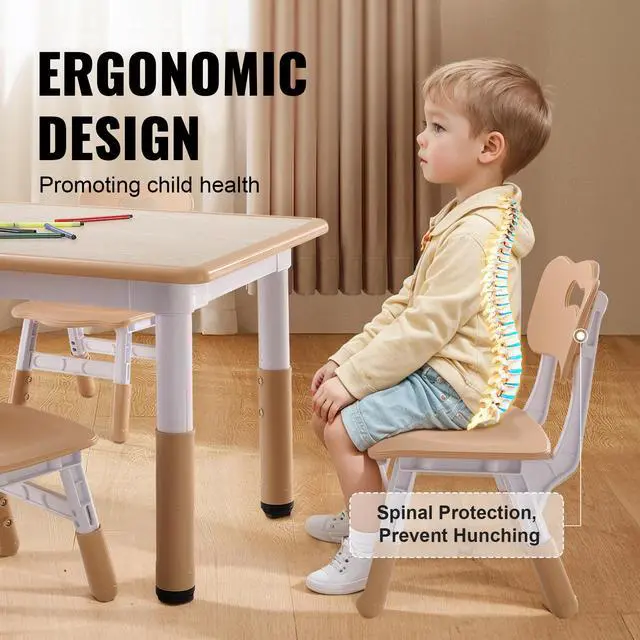 VEVOR Kids Table and 4 Chairs Set, Height Adjustable Toddler Table and Chair Set, Graffiti Desktop, Children Multi-Activity Table for Art, Craft, Reading, Learning