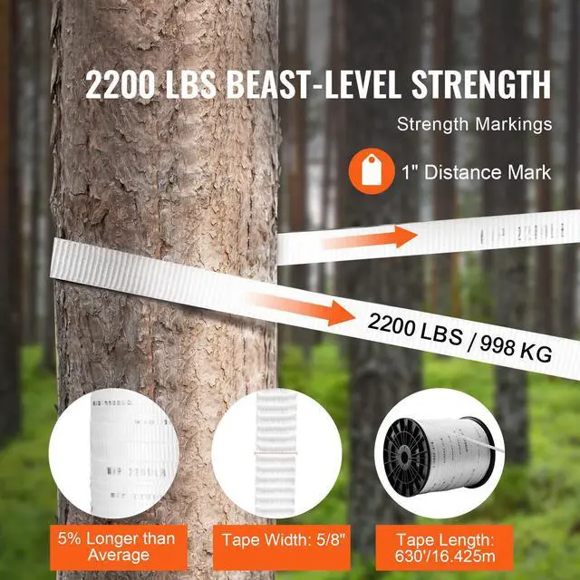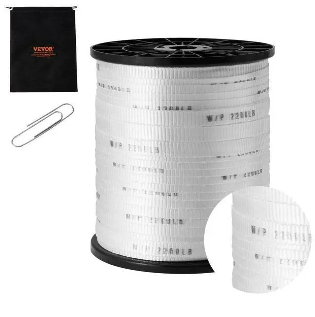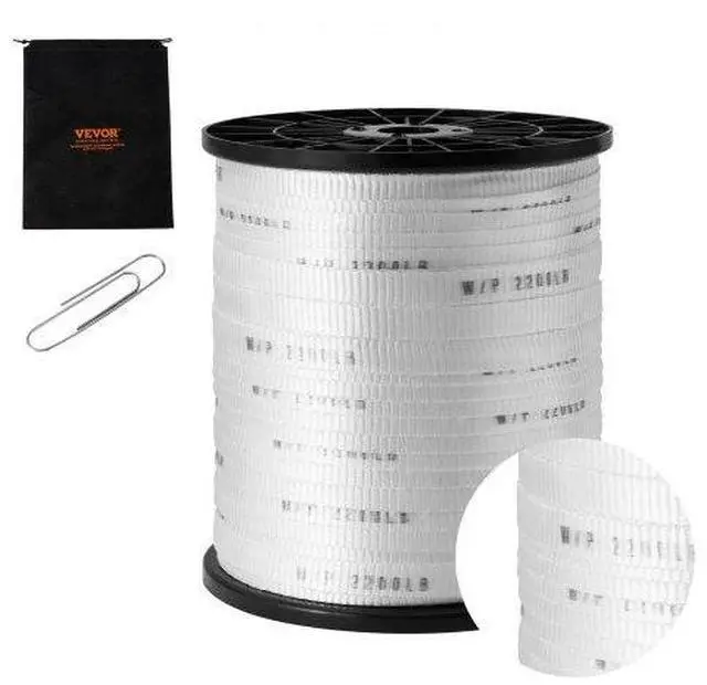 VEVOR Polyester Pull Tape, 5/8" x 630' Mule Tape Flat Rope, 2200 lbf Tensile Capacity, Printed Webbing Cable Pulling Tape for Packaging, Gardening, Commercial Electrical, Conduit Work, White