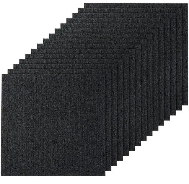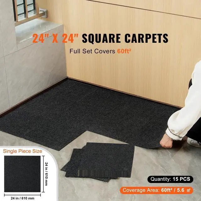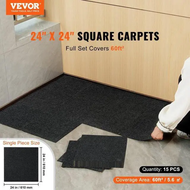 VEVOR Carpet Tiles Peel and Stick, 24 x 24 Squares Self Adhesive Carpet Floor Tile, Soft Padded Carpet Tiles, Easy Install DIY for Bedroom Living Room Indoor Outdoor (15Tiles, Carbon Black)