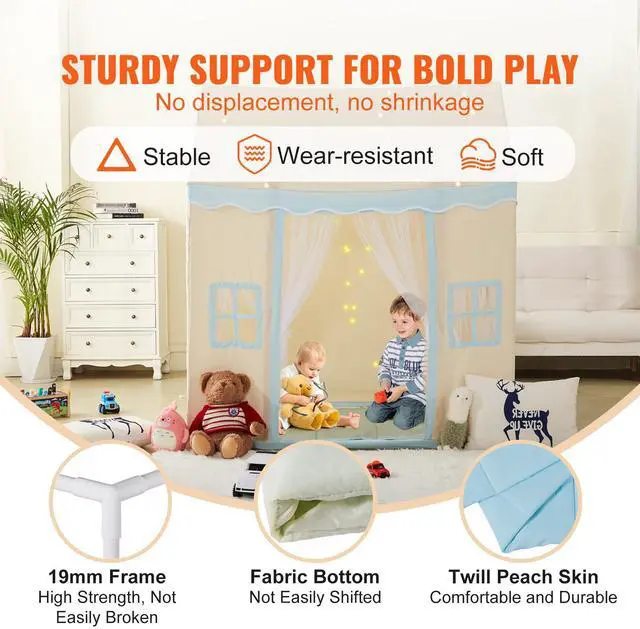 VEVOR Kids Play Tent, Kids Tent for Kids 1-5 Years Old, Toddler Tent with Mat and Tent Lamp, Tent for Kids with Windows for Indoor and Outdoor, Play House Castle Tent for Boys and Girls, Beige