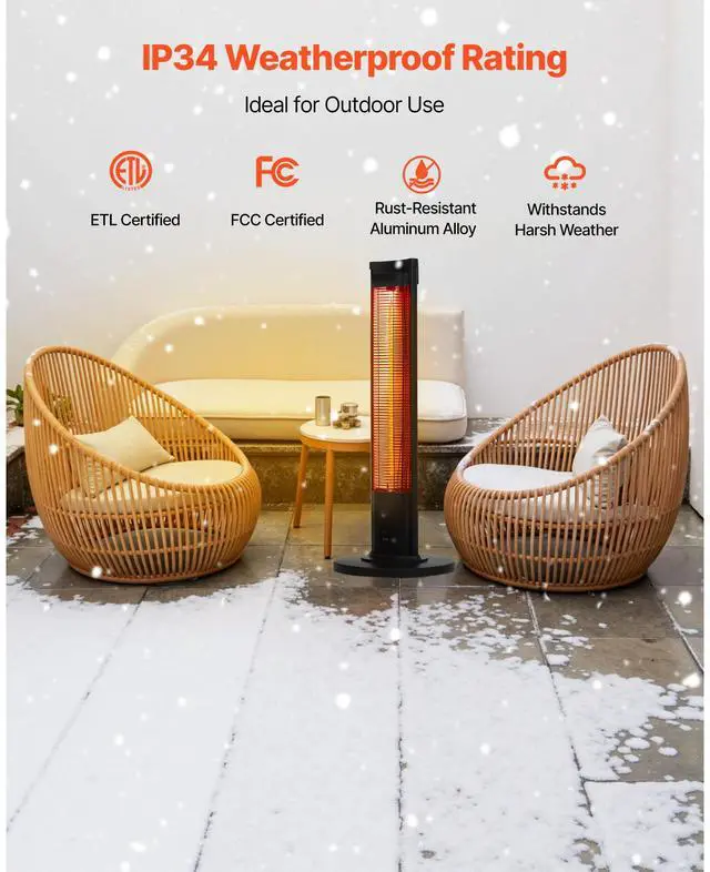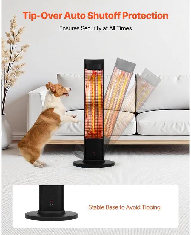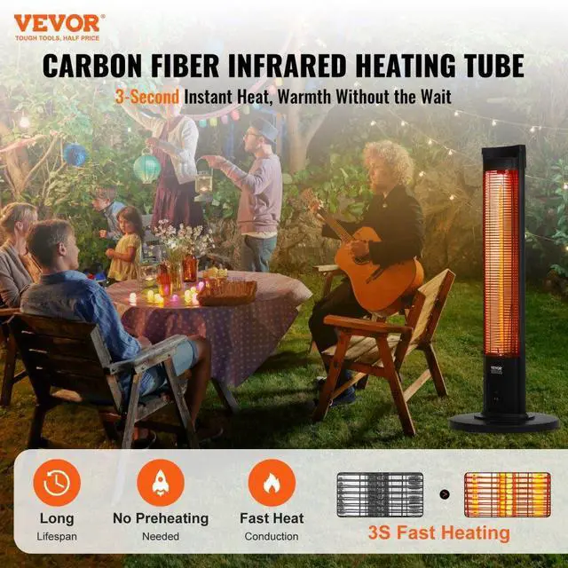 VEVOR Infrared Heater, 1500W Remote Control Electric Space Heater, Patio Heater w/ 3 Speeds & Timer & Tip-Over Protection, Outdoor/Outdoor for Bedroom,Studio,Porch,Dining Room,Studio, Stand,40in L