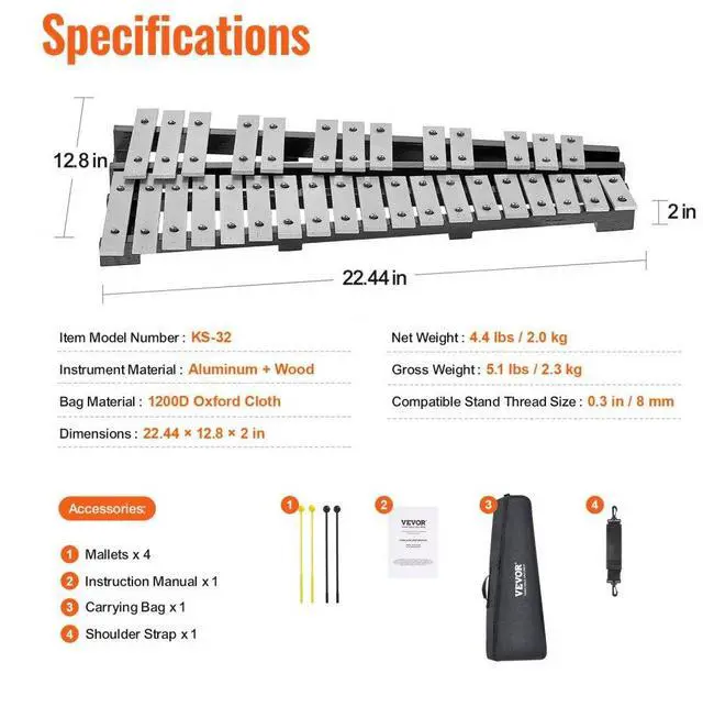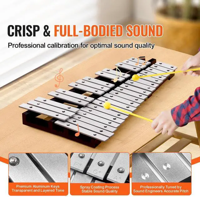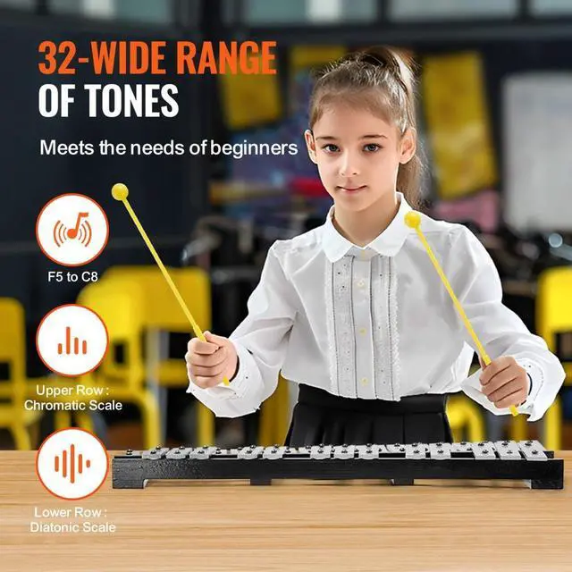 VEVOR 32 Note Glockenspiel Xylophone Bell Kit, Percussion Instrument with Mallets, Drum Sticks and Carrying Bag, Professional Glockenspiel Xylophone Percussion Instrument Set for Adults & Students
